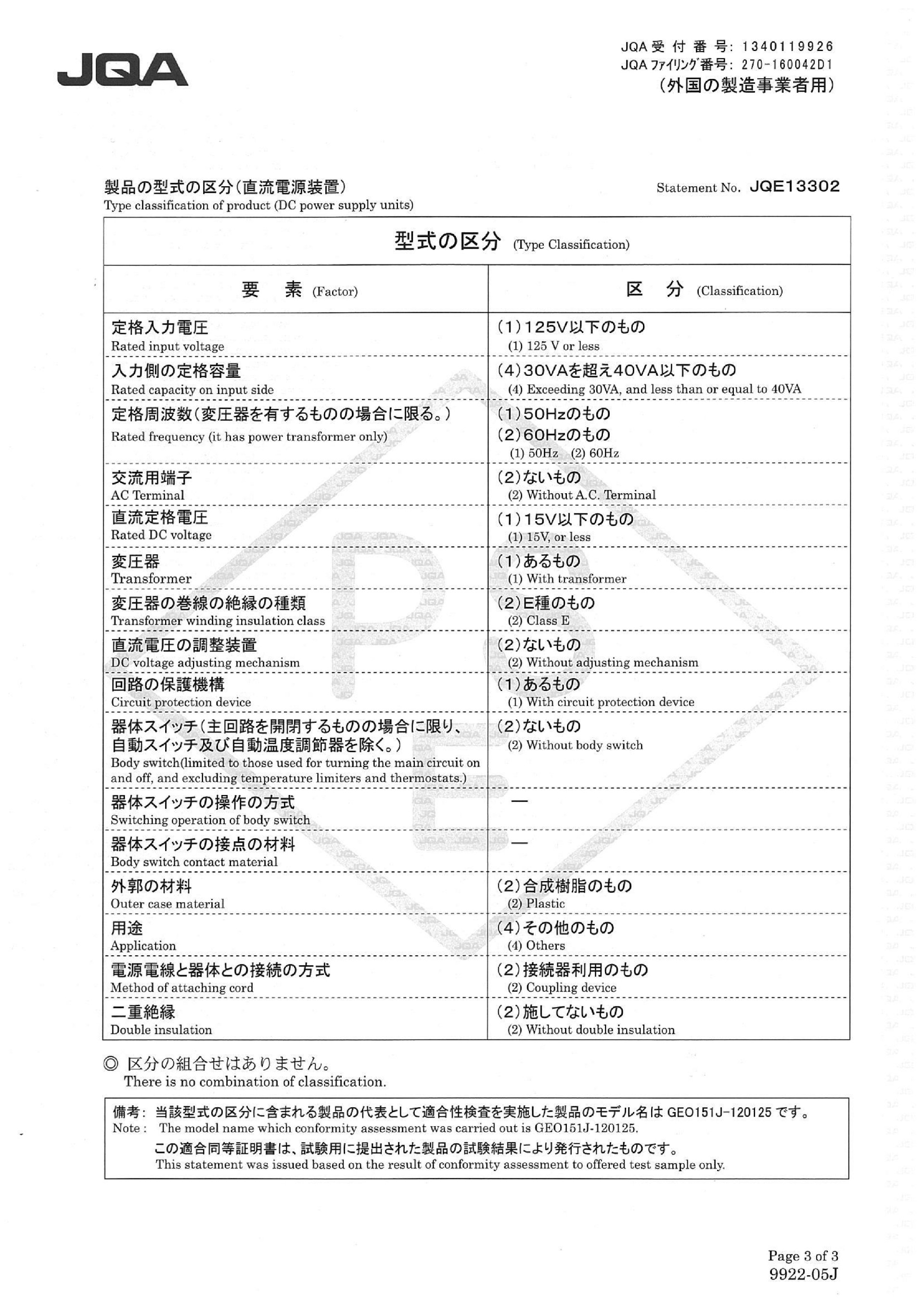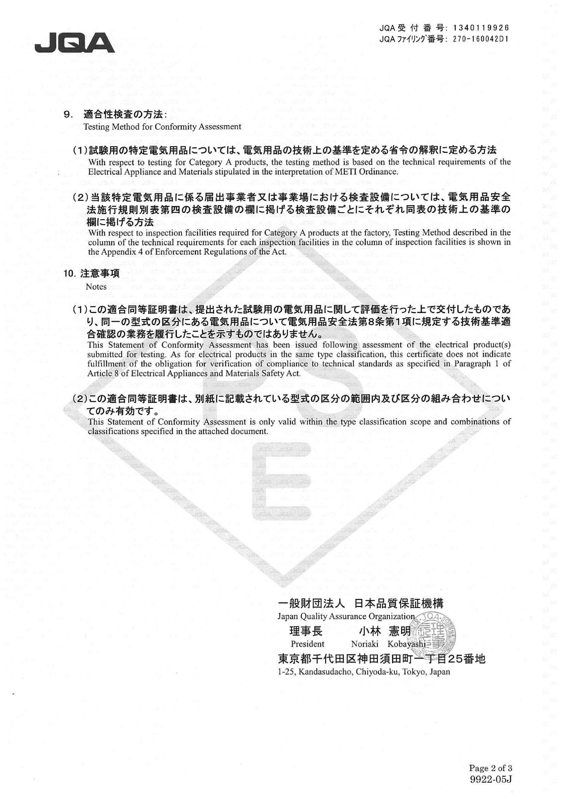 本產(chǎn)品已經(jīng)符合了適用的日本的PSE指令和標(biāo)準(zhǔn),并且已經(jīng)通過(guò)認(rèn)證機(jī)構(gòu)的評(píng)估和測(cè)試。該產(chǎn)品的設(shè)計(jì)、制造和性能滿足了相關(guān)的安全要求。