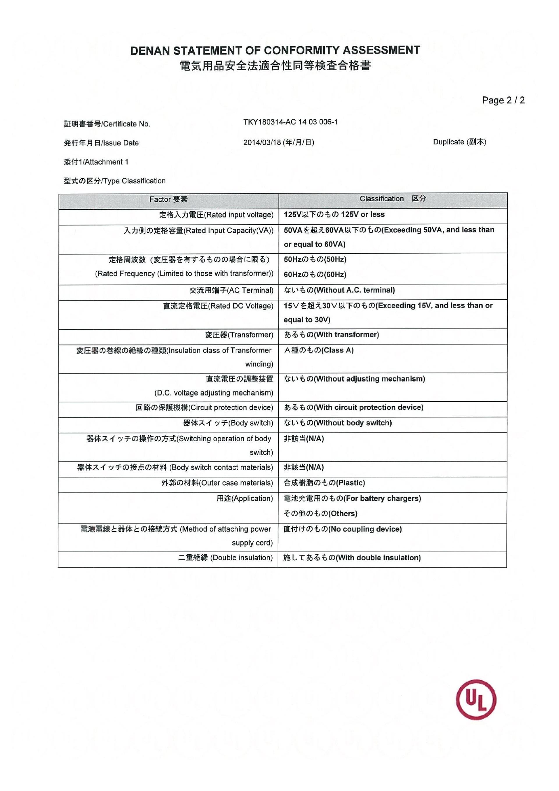 本產(chǎn)品已經(jīng)符合了適用的日本的PSE指令和標(biāo)準(zhǔn),并且已經(jīng)通過認(rèn)證機(jī)構(gòu)的評(píng)估和測(cè)試。該產(chǎn)品的設(shè)計(jì)、制造和性能滿足了相關(guān)的安全要求。