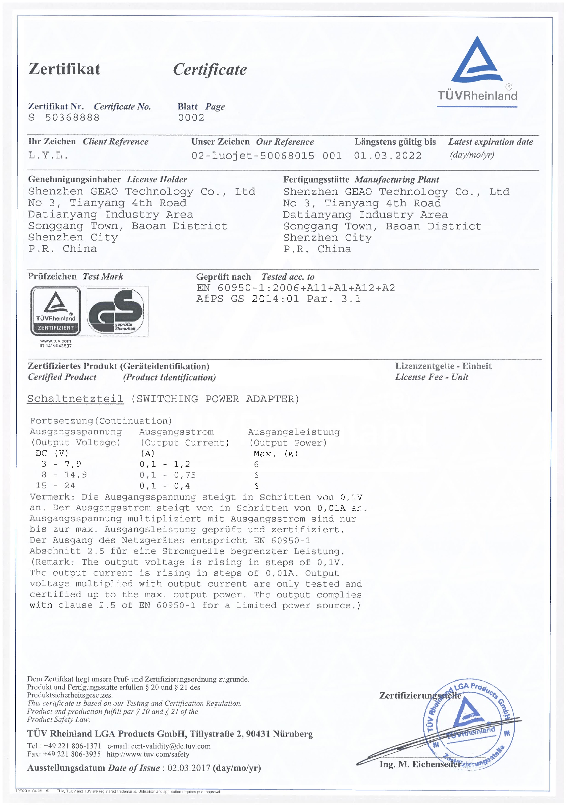 本產(chǎn)品已經(jīng)符合了適用的德國的GS指令和標準,并且已經(jīng)通過認證機構的評估和測試。該產(chǎn)品的設計、制造和性能滿足了相關的安全要求。