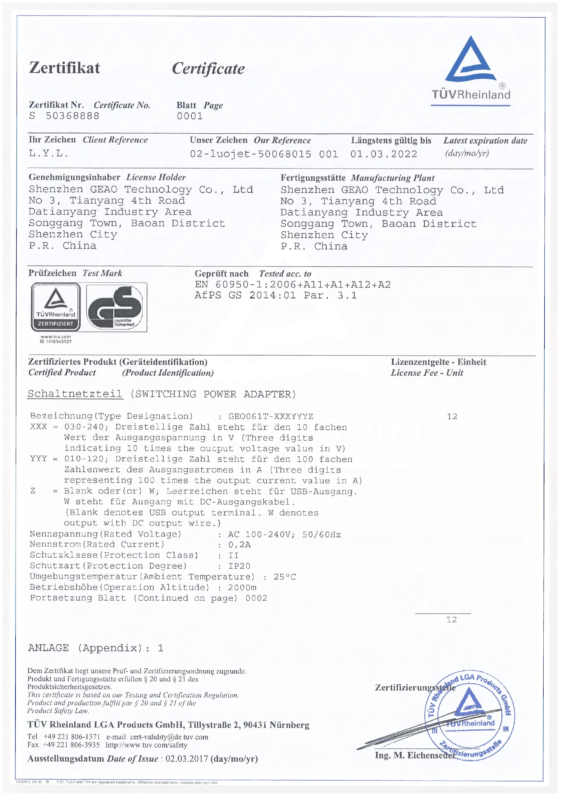 GS證書是德國產(chǎn)品安全和品質認可的標志。獲得GS證書表明吉奧科技的產(chǎn)品已經(jīng)通過了德國標準和規(guī)定的評估,并符合德國市場的安全性要求。這將提高消費者對吉奧科技產(chǎn)品的信任和認可度。