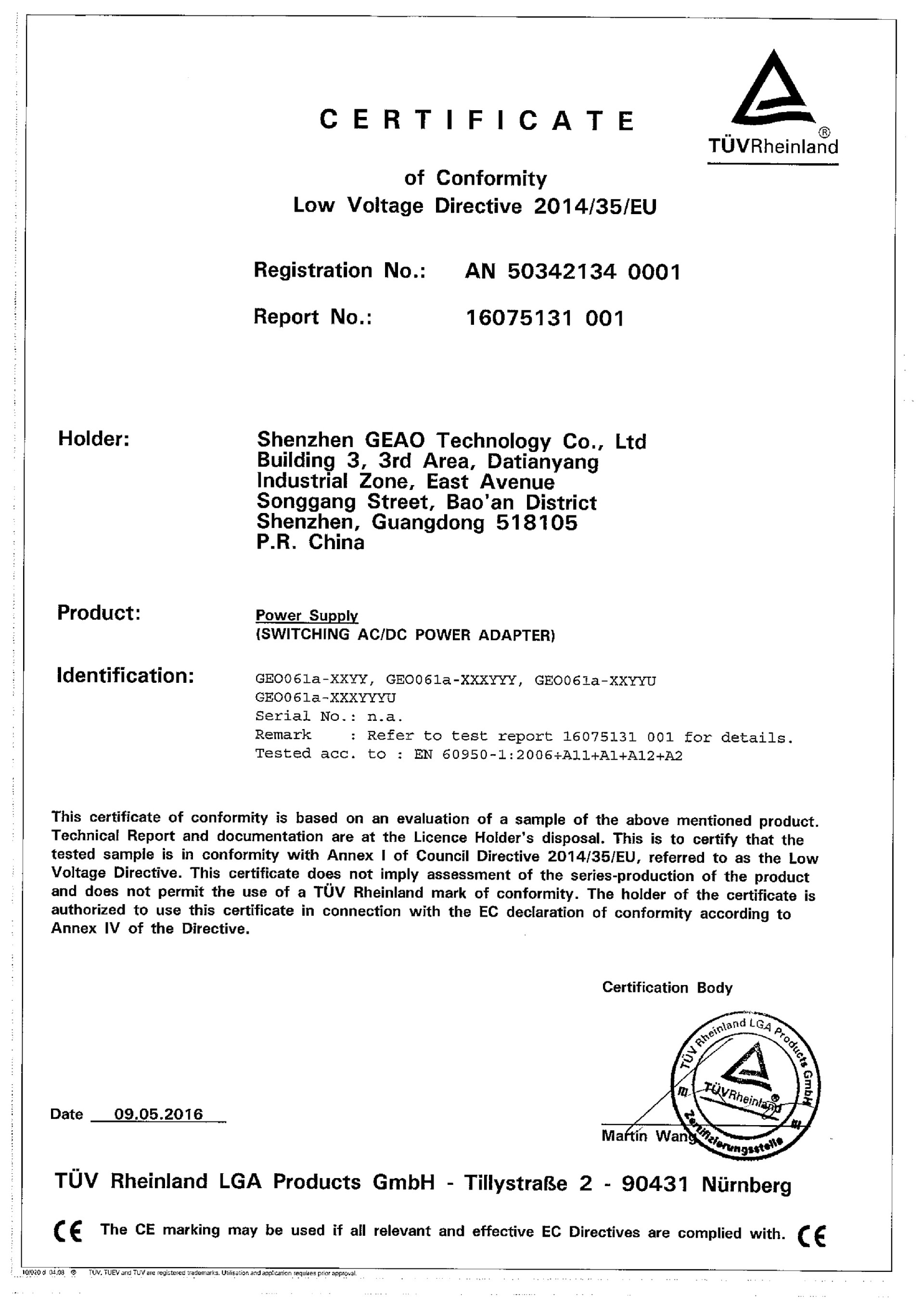 產(chǎn)品符合以下標(biāo)準(zhǔn):EN60950-1:2006+A11+A1+A12+A2